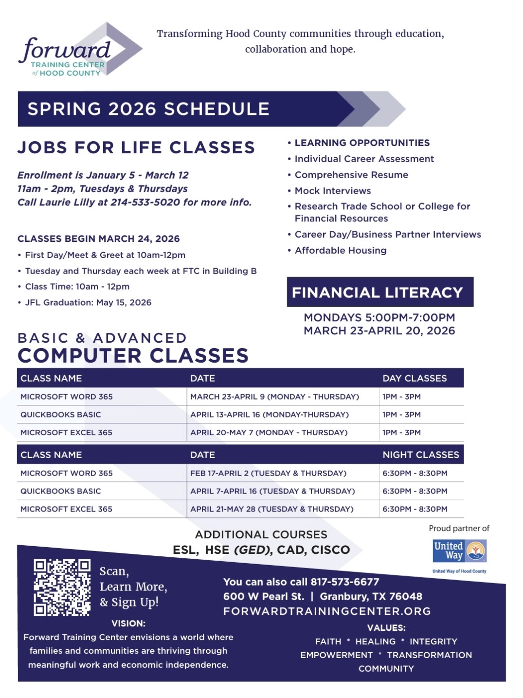 Forward Training Center provides a diverse selection of no-cost classes designed to help you build skills, confidence, and momentum for what’s next. We invite you to join us and experience one of our programs firsthand.